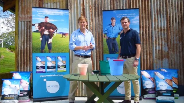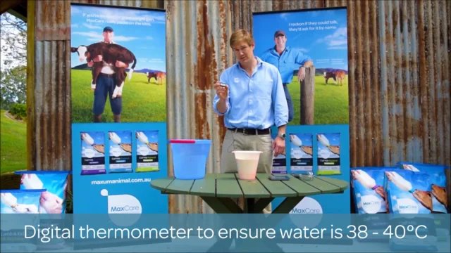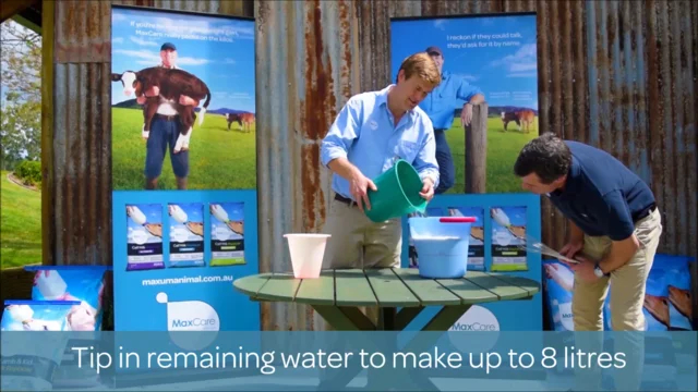 Add MaxCare calf milk replacer to half the required volume of fresh, clean water at 38 - 40°C.